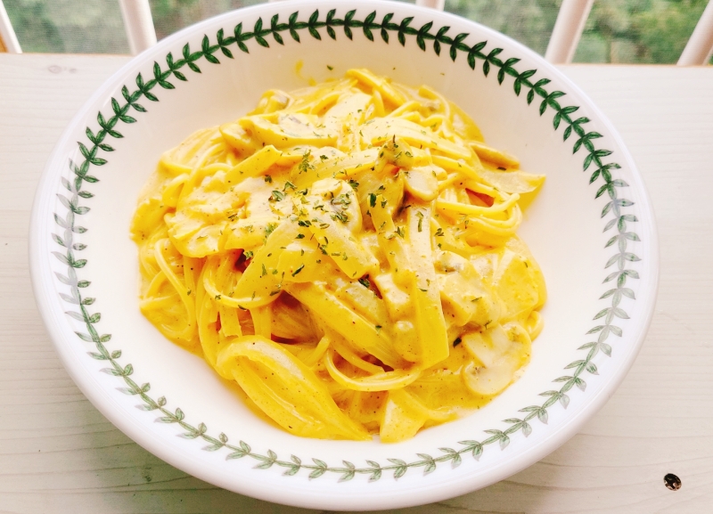 처음으로 카레크림파스타 만들어 점심을 먹었습니다