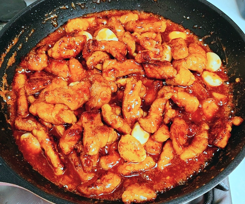 양념소스 : 케찹 5T, 고추장 3T, 물엿 180ml, 간장 2T, 물 3T, 양파 1/4개, 다진 마늘 2T