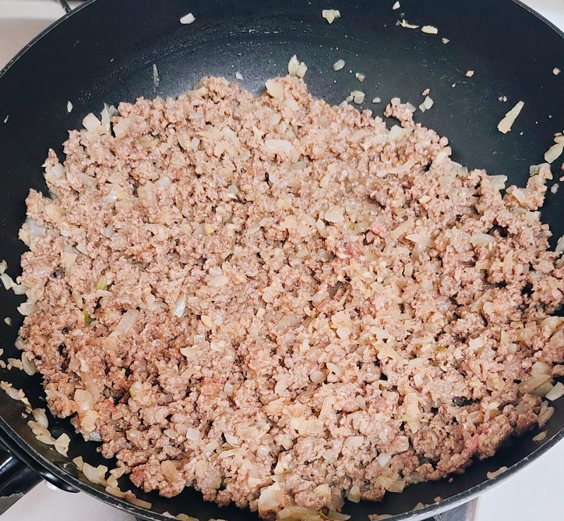 다진 소고기이기에 뭉쳐질수 있으므로 잘 풀어가면서 볶아줍니다