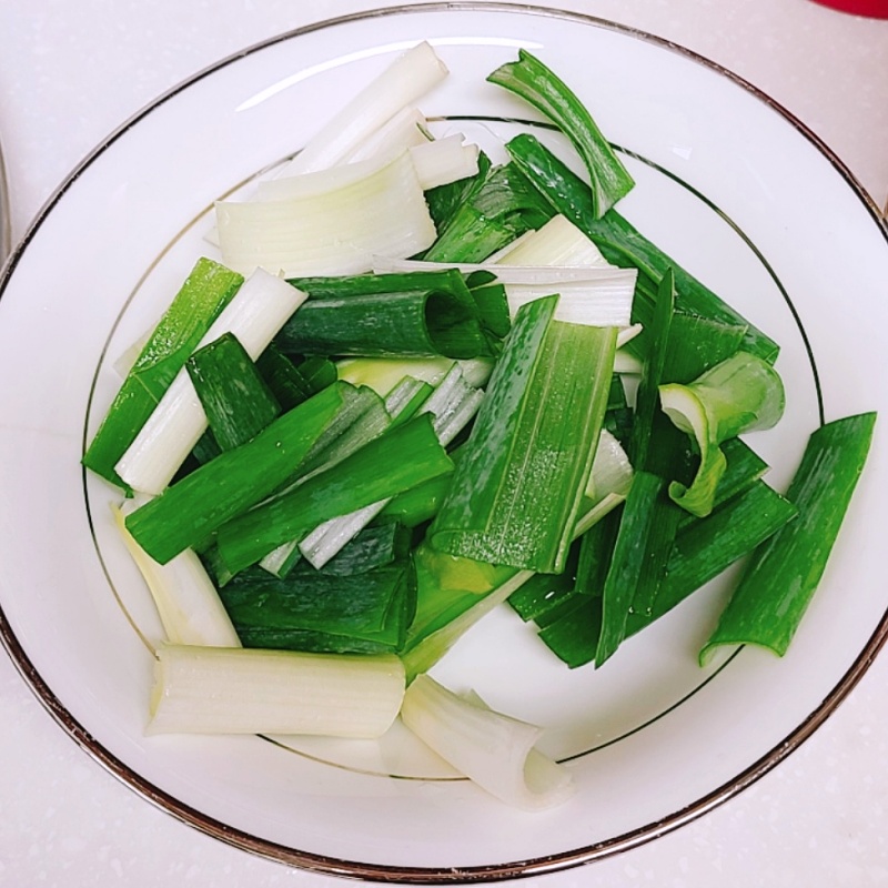 대파는 세로로 길게 반으로 가른후 3~4cm 길이로 썰어줍니다