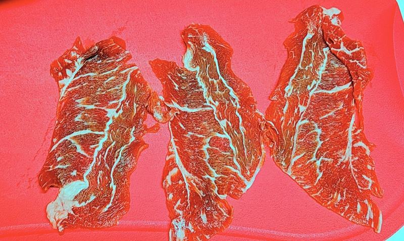 불고기감은 냉동이라 얇게 썰어집니다. 크게 반으로만 잘라달라고 했더니 이런 모양이 되었네요
