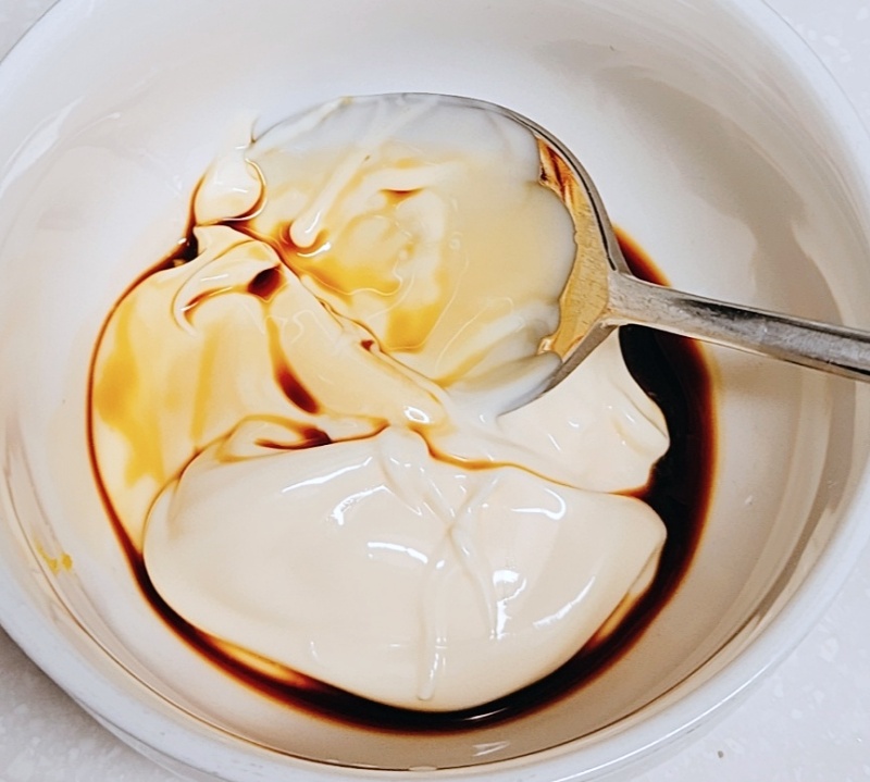 소스 : 마요네즈 2T, 연겨자 1/2T, 설탕 1T, 간장 1/2T