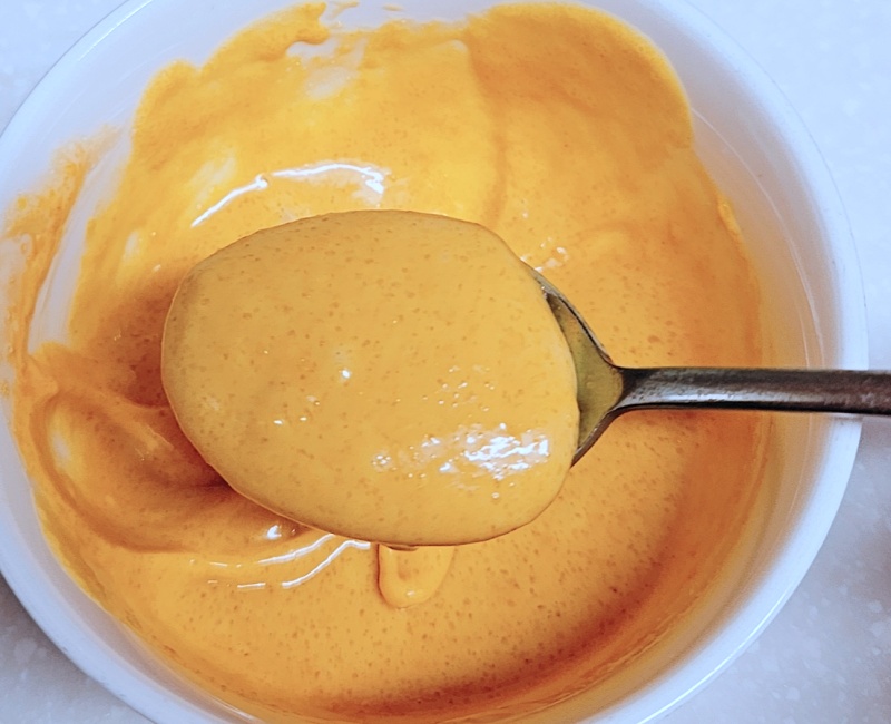 마요네즈에 와사비가 들어가 고소하면서도 살짝 매콤한 맛의 소스가 완성되었습니다