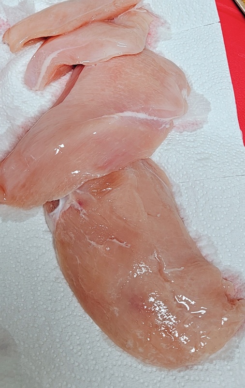 닭가슴살은 키친타월로 물기를 제거하고 작게 깍둑썰기를 해주세요