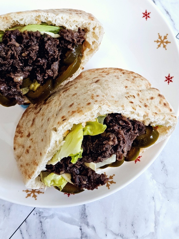피타브레드를 어떻게 먹는지 모르는 언니를 위해 샌드위치를 만들어서 주었답니다