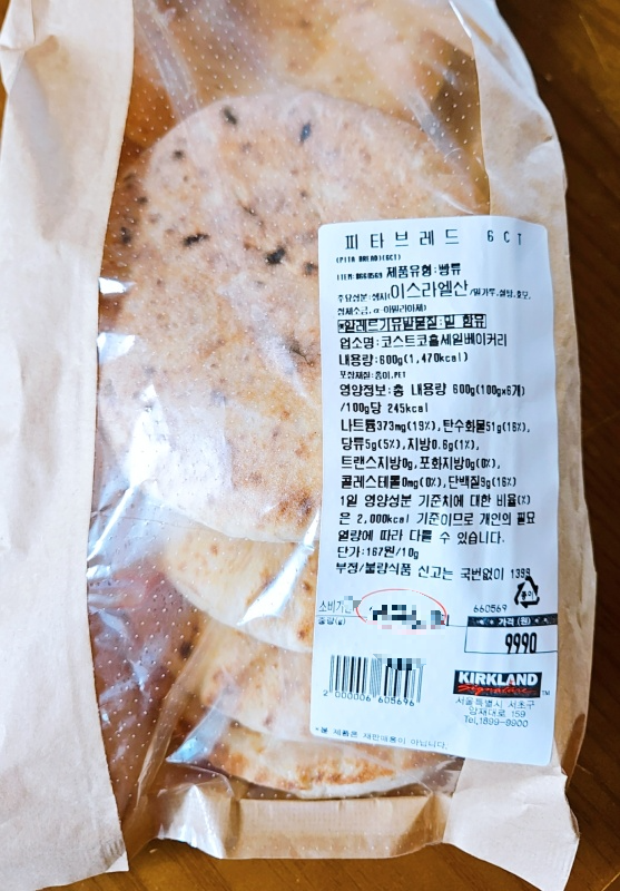 코스트코 피타브레드는 6개가 들어있습니다